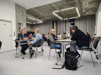 17. Oktober 2025 Autor(in): Master School Drehbuch Mit dabei MSD-Absolventin Caro Kadatz (32.) Hier im Foto rechts im Gespräch mit Wenka von Mikulicz (dcm stories). Wir drücken die Daumen für erfolgreiche Projekte.